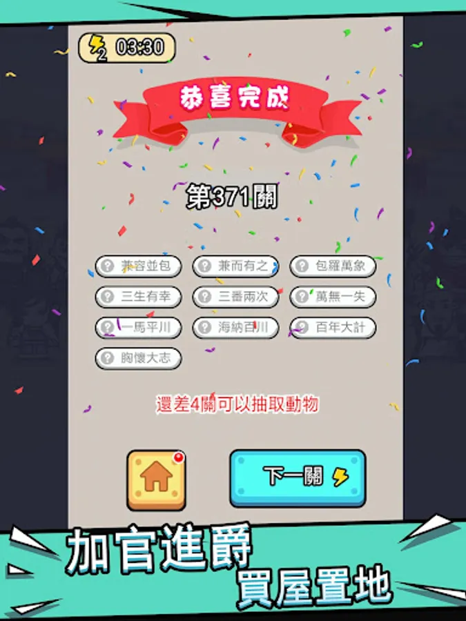 Idiom Solitaire 😀 is a free word game with clear screen, simple operation, educational and fun, easy to use, not conducive to gradual upgrades, constantly challenge and refresh your idiom vocabulary, and continue to learn knowledge in the game. You need to fill the space one by one to form the correct idiom to successfully break through the level! 🏆