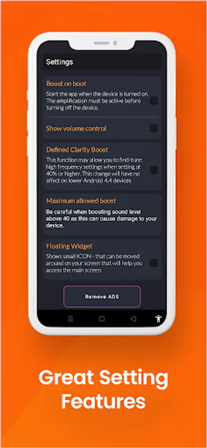 Please remember that Simple Booster if powerful tool and can and has the capability of harming damaging your hearing and you can destroy your speakers on your device. If crackling is heard or distorted Audio please lower your Volume on your device.