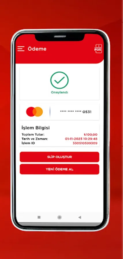 With Ziraat Katılım Cepten POS application, you can receive payments from contactless debit and credit cards by using your NFC-enabled mobile phones for transactions up to 1500 TL without a password, and for transactions over 1500 TL with a password. Moreover, you can cancel your transactions on the same day, query your past transactions, and send transaction slips to your customers via e-mail, SMS or QR code.