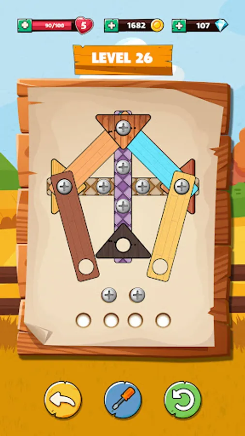 Engage yourself in the captivating gameplay of nuts and bolts unscrew puzzle levels, from basic nut wood challenges to advanced wood puzzles. Each level of the nuts and bolts puzzle brings a new, challenging and unique wooden puzzle based on wood nut board while also keeping your brain trained with a sharp nut or unscrew.