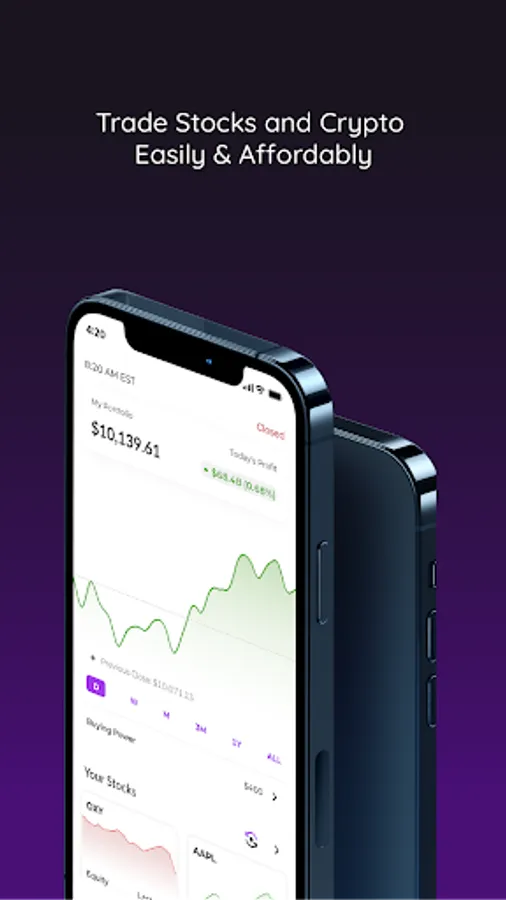 • Keep a close eye on your stocks’ movements in different time frames, and be informed of your daily and total profits.