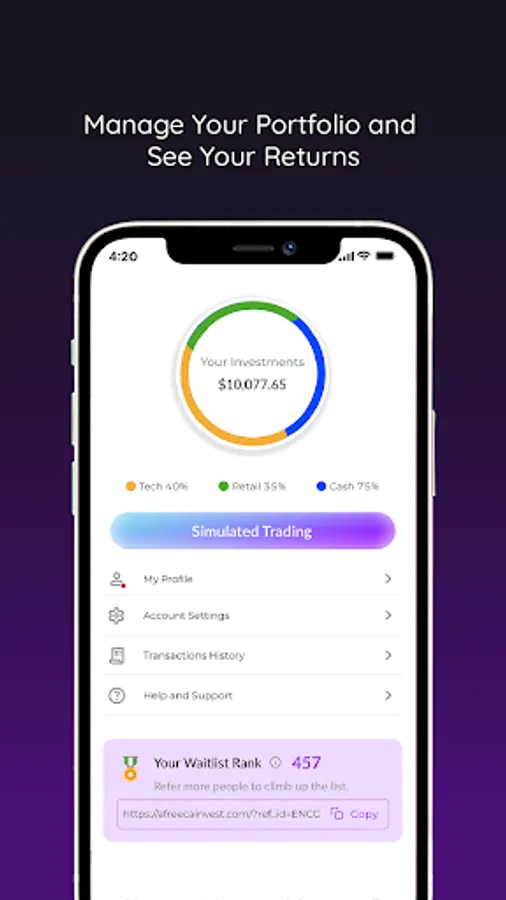 • When you sign up, your account is credited with $10,000 (fake money) for you to practise trading before the app goes live.