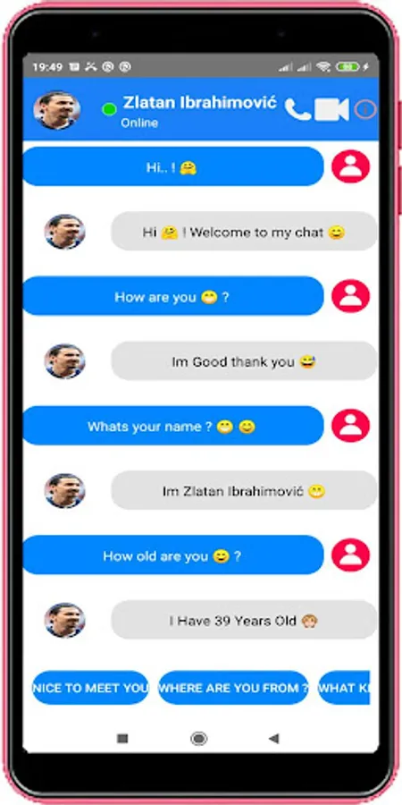 Enjoy contacting Ibrahimović clock call by chat in an easy way, feel free and download Zlatan Ibrahimović app video call for have fun with friends.
