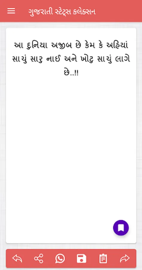 * Daily Updates: Stay engaged and inspired with new Gujarati status updates every day. Discover fresh perspectives and meaningful thoughts to uplift your spirits.
