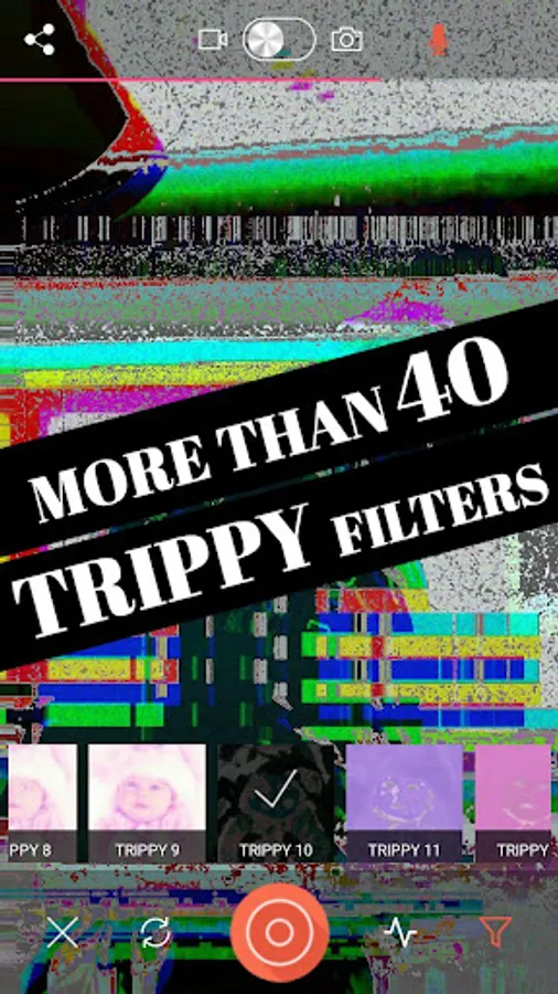 More than 50 glitch vhs effects and 50 trippy filters ready for your creativity, to distort and mess up your photos and videos.