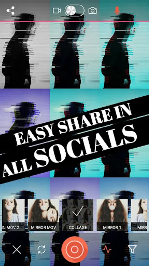 Glitch video effects can export your media to the gallery or share it to other apps like Instagram, Snapchat, Facebook, Twitter, etc.