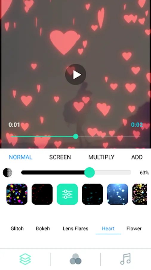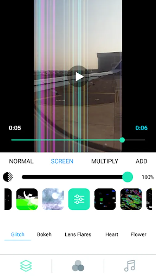 Glitch video maker app contains Glitch Sounds Library, Halloween Sounds Library , Thunder Sounds Library, Wolf Sounds Library. Now you can add your custom music from your playlists.