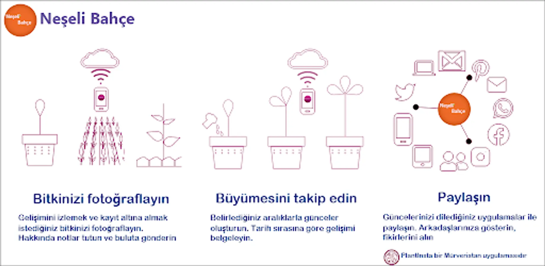 Take photographs of the growth of your plants. Record your plants' development by creating their own special journals. Share your images with other apps if you wish. Monitor your plant's growth day by day, hour by hour, with your notes whenever you want. Share, publish, archive your created diaries.