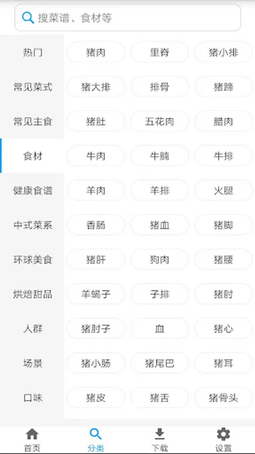 The recipes are fully classified, with common dishes, common staple foods, healthy recipes, Chinese cuisine, global cuisine, baked desserts, crowd scenes, tastes, cooking styles, and a variety of private dishes.