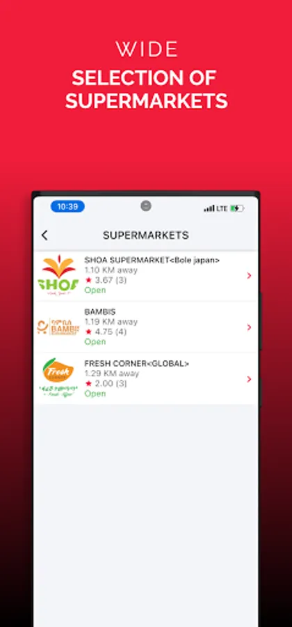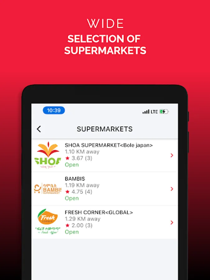 Browse nearby supermarkets and more like: Shoa supermarket, Abadir supermarket, Bambis super mark.