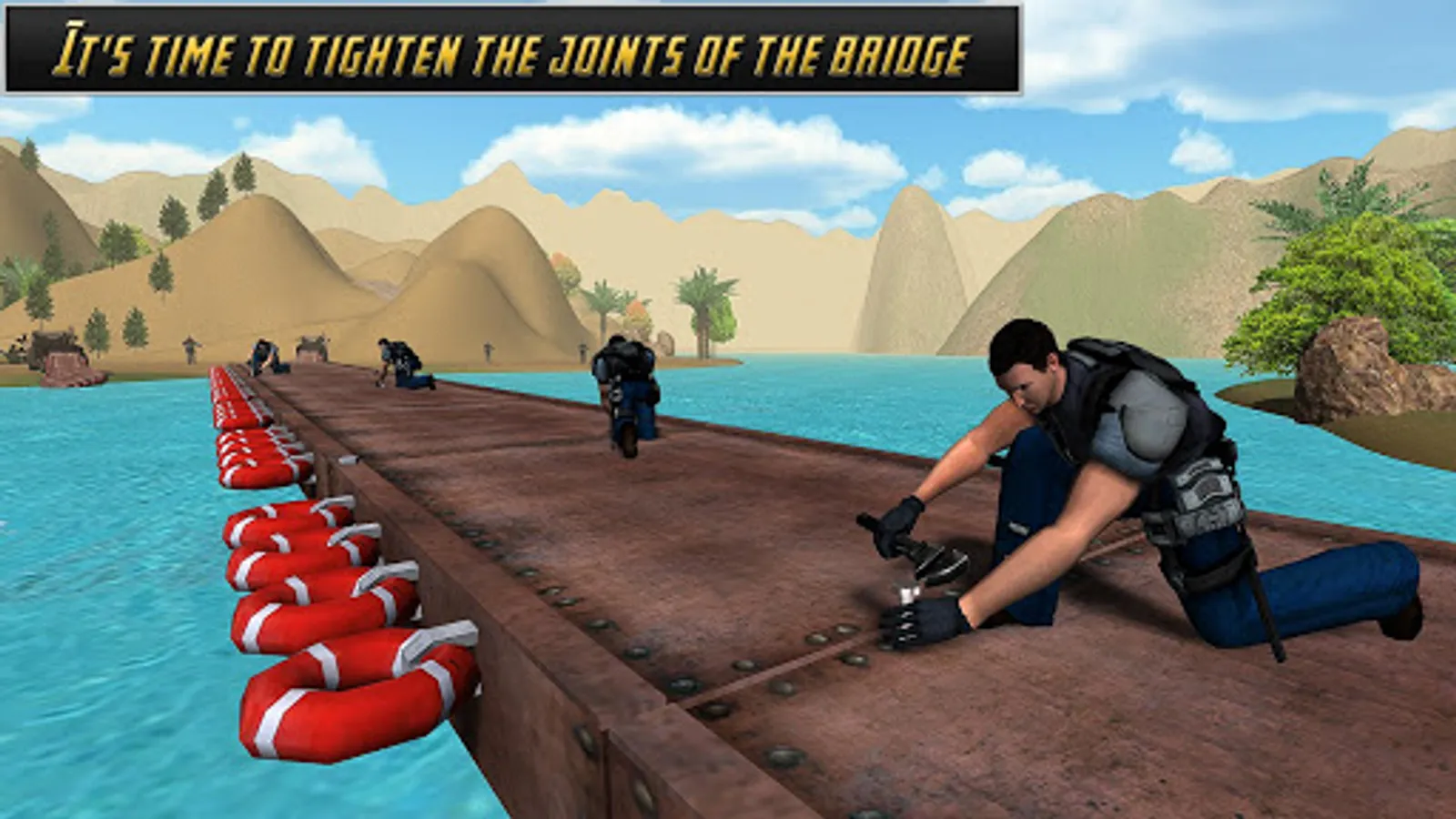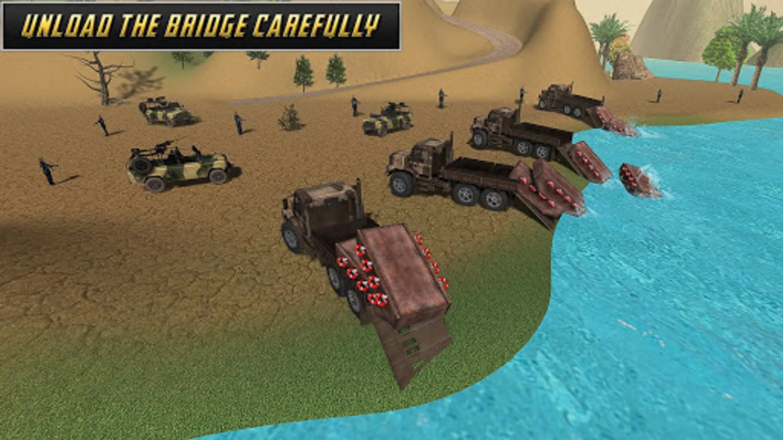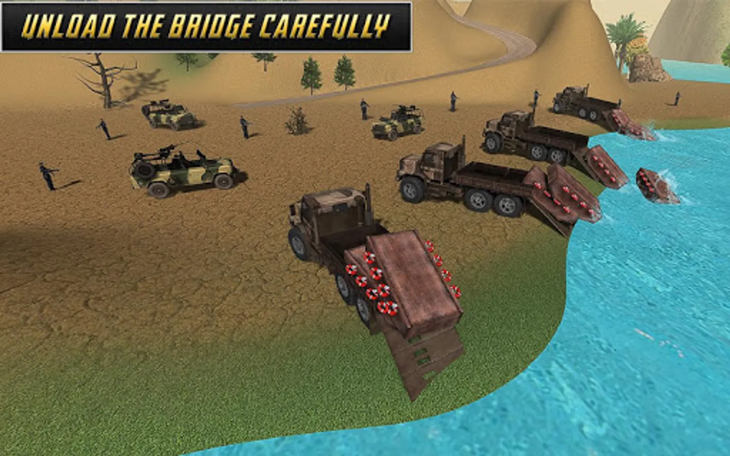 Enough with army truck and truck trailer games? Now jump in to the new concept and build a temporary bridge in American Army Bridge Builder. You are a crew member of your battalion and have to lead your cargo to other side of the river. As a construction team member you have to construct bridge over a running river for military purposes. Once all the soldiers crossed the water body safely, this can be revamped easily. You can call this a floating bridge. As a player in this game, you will feel yourself like a soldier. These drills have been a regular part during your training days but now you have to actually do this for a specific operational purposes.
