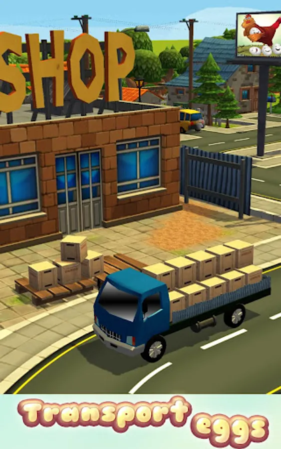 * You have to drive a vehicle from farms to market to sell eggs and chicken.
