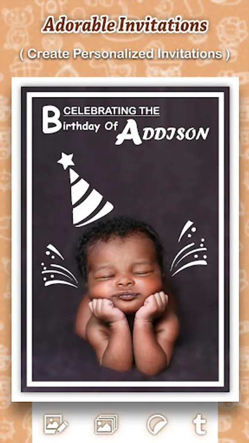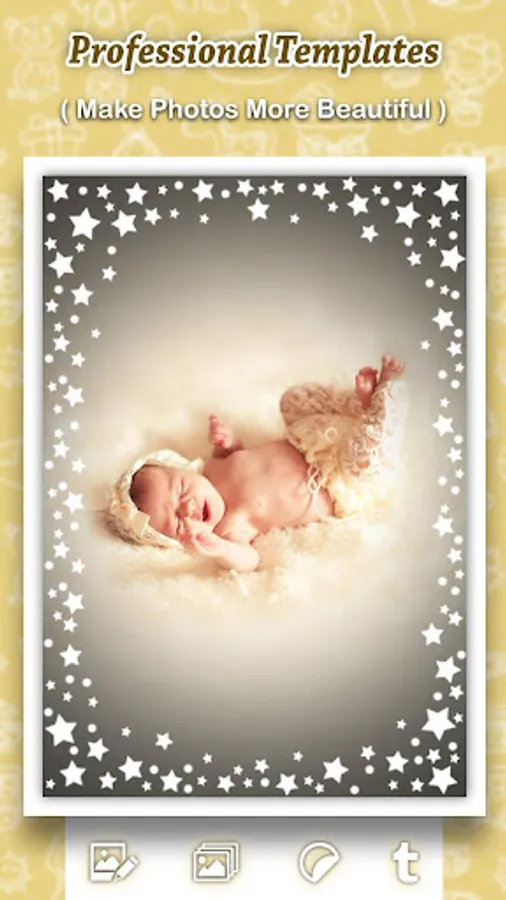 • Design your unique baby photo and save & share them on social media.
