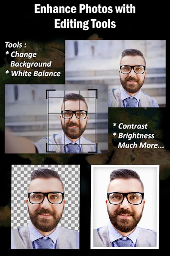 - Make your photos like professional studios with best editing tools like - Change Background, White Balance, Brightness, Contrast, Saturation and much more.