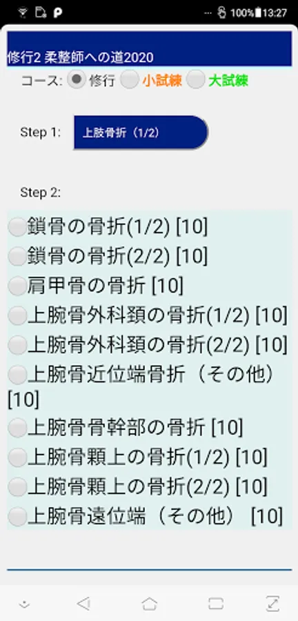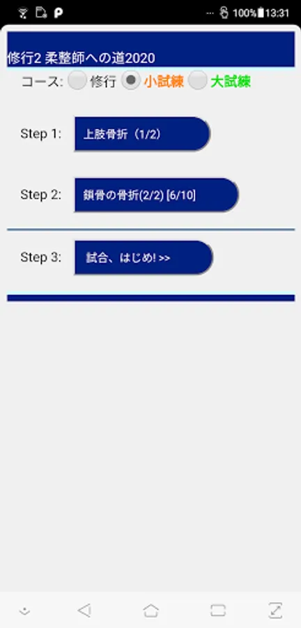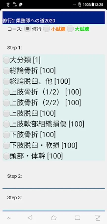 Training: Please specify the target field from the major classification and the middle classification. Exercises will be given. You can judge 〇 × for each problem. You can return to the previous question, but you cannot leave midway. At the end of the exercise, you will see a list of sentences (yellow background) to remember. Practice and remember iteratively.