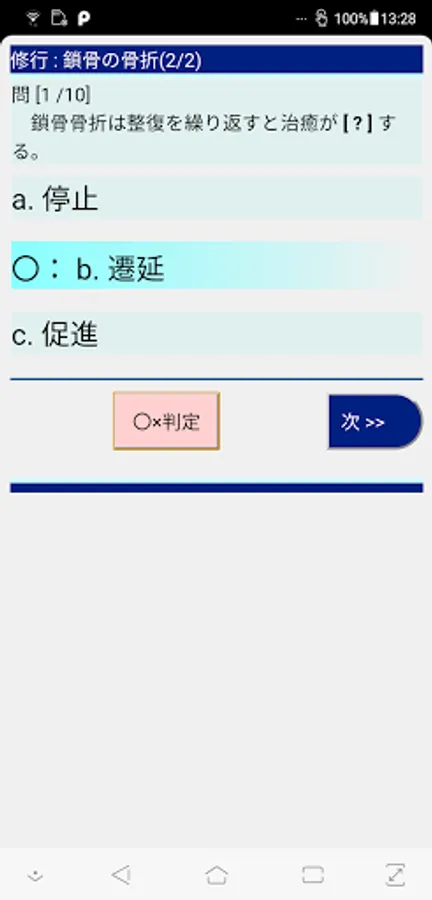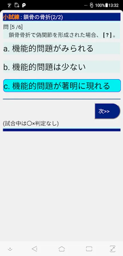 If you select one of the answer options, you can make a 〇 × judgment. "Next >>": Move on to the next problem.