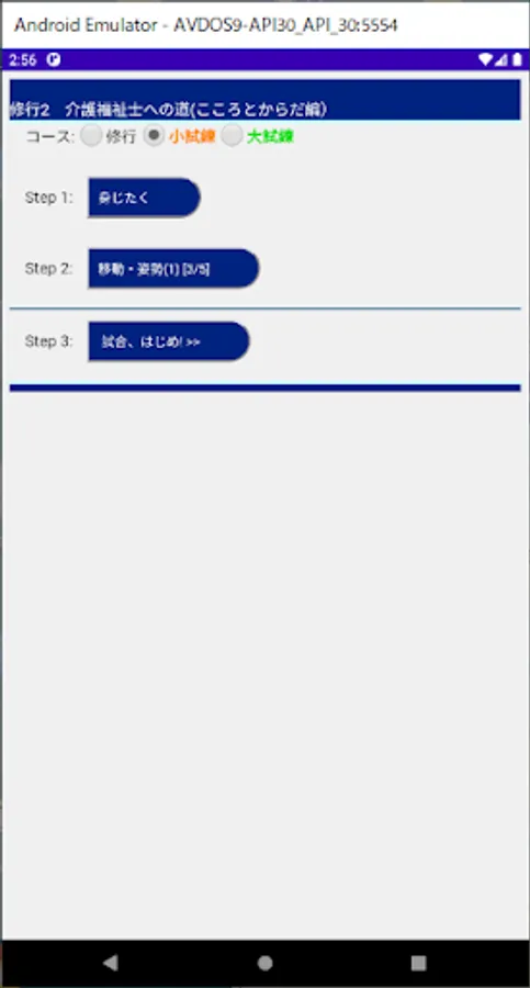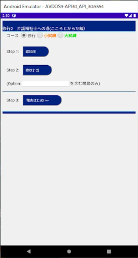 "Training" of this application is a repetition of multiple choice exercises. Remember the right thing. "Small trials" are exams for each small field. "Great Trials" are exams in large fields. Grades are not saved. Studying is lonely, but let's do our best.