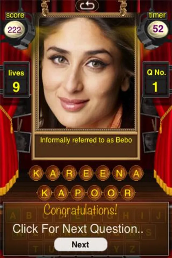 The Hint will be a textual clue about that actresses from her life and works. Faster you answer, higher you score. Wish you happy gaming with the divas.