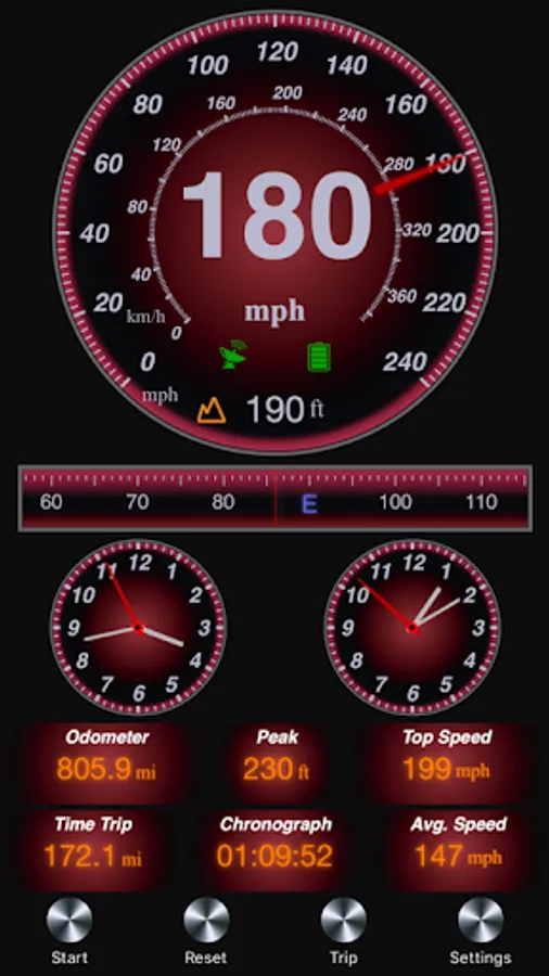 As GPS speedometer, it supports to gauge speed of walking, jogging, raiding bike. It also supports to gauge the speed of cars, boats, trains or air planes. What ever the vehicle is, with the app, you can know the current speed. It supports double scales. And you can choose the display unit. It support to record trip and the average speed.