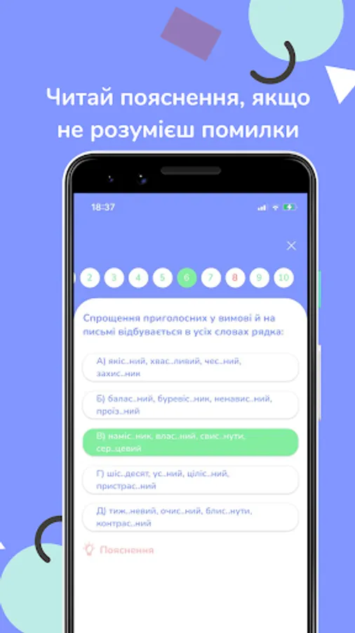 Each task in the Ukrainian language contains an explanation of all the possible answers, so you will definitely not have any unclear points during your studies.