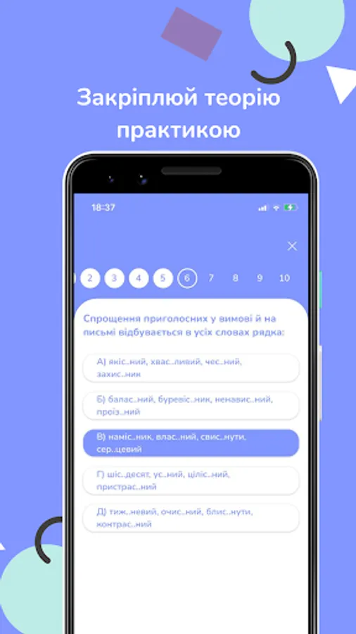 Using our application, you can prepare for the exam yourself. Do you already have a teacher? You can use it as an additional source of information for training.