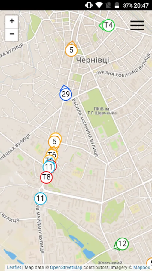 The application allows you to see in real time, where there are now buses and trolleybuses in Chernivtsi.