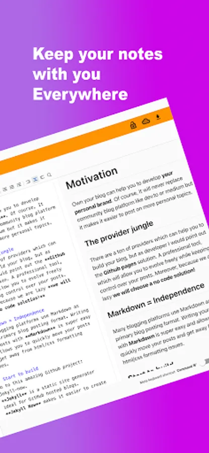 Markdown & Text Note Manager. Enjoy great ease of use thanks to Dark mode, #Tags and advanced text formatting.