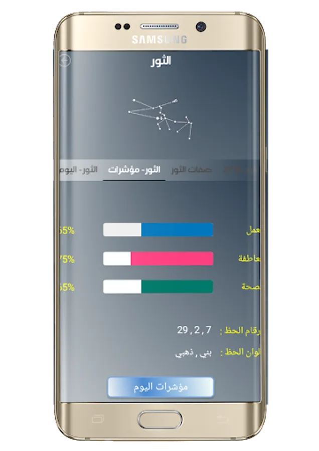 ارجو الانتباه الى ان الغرض من التطبيق هو التسلية واضافة المعلومات الجديدة التي يوفرها التطبيق ولكن لايجب الاعتماد على التوقعات في تقرير مسير حياتنا وانما العمل المثابر هو وحده من يوصل الى الاهداف.