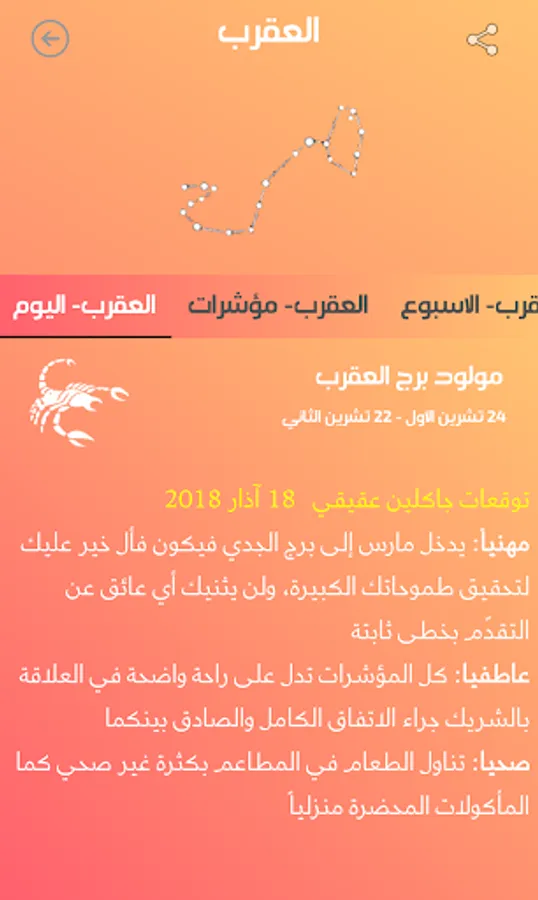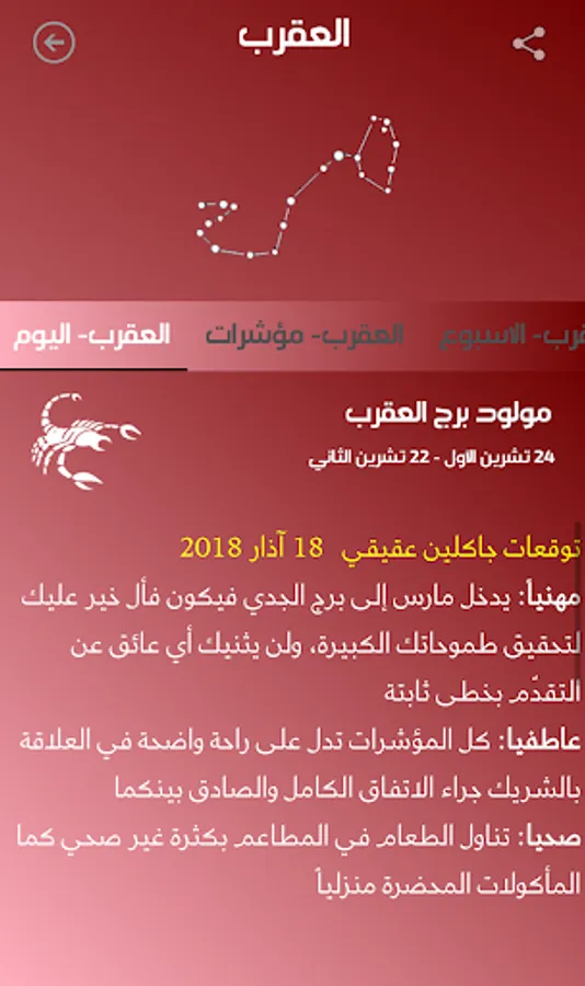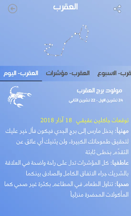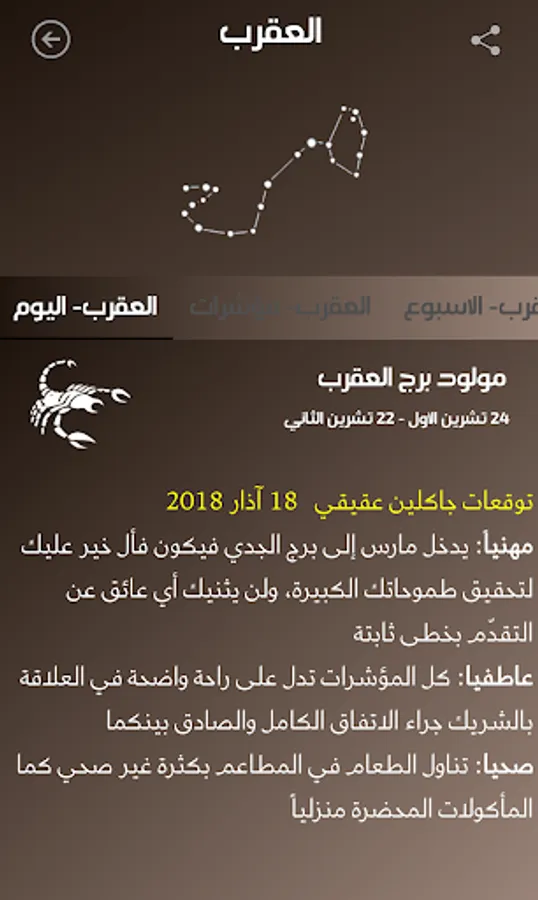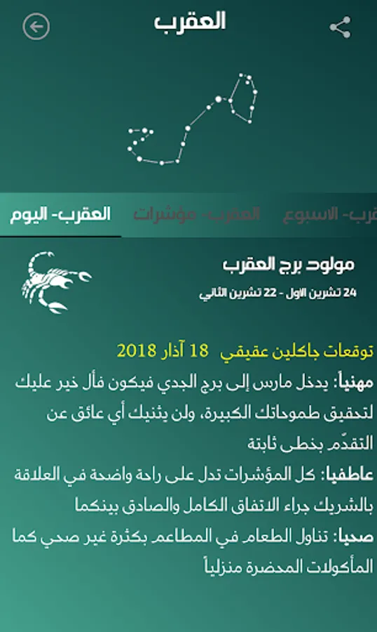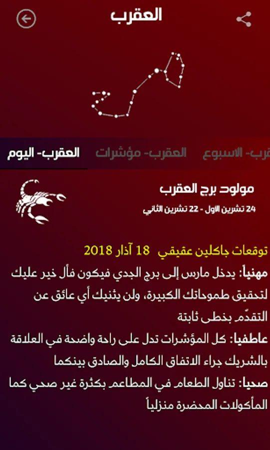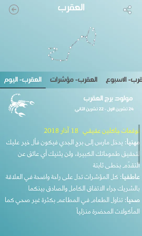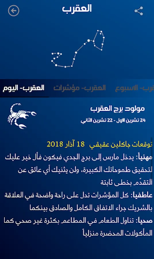 ارجو الانتباه الى ان الغرض من التطبيق هو التسلية واضافة المعلومات الجديدة التي يوفرها التطبيق ولكن لايجب الاعتماد على التوقعات في تقرير مسير حياتنا وانما العمل المثابر هو وحده من يوصل الى الاهداف.
