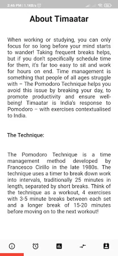When working or studying, you can only focus for so long before your mind starts to wander! Taking frequent breaks helps, but if you don't specifically schedule a time for them, it's far too easy to sit and work for hours on end. Time management is something that people of all ages struggle with – The Pomodoro Technique helps you avoid this issue by breaking your day, to promote productivity and ensure well-being! Timaatar is India’s response to Pomodoro – with exercises contextualized to India.