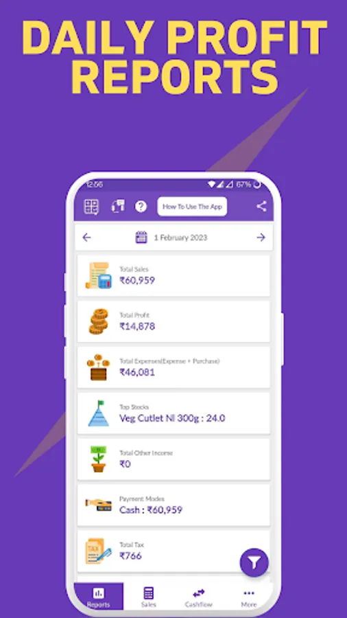 Bizli billing app will automatically calculate your daily sales & expense and show you detailed reports along with top items and break down of payment mode received & breakdown of sale was done by which member.