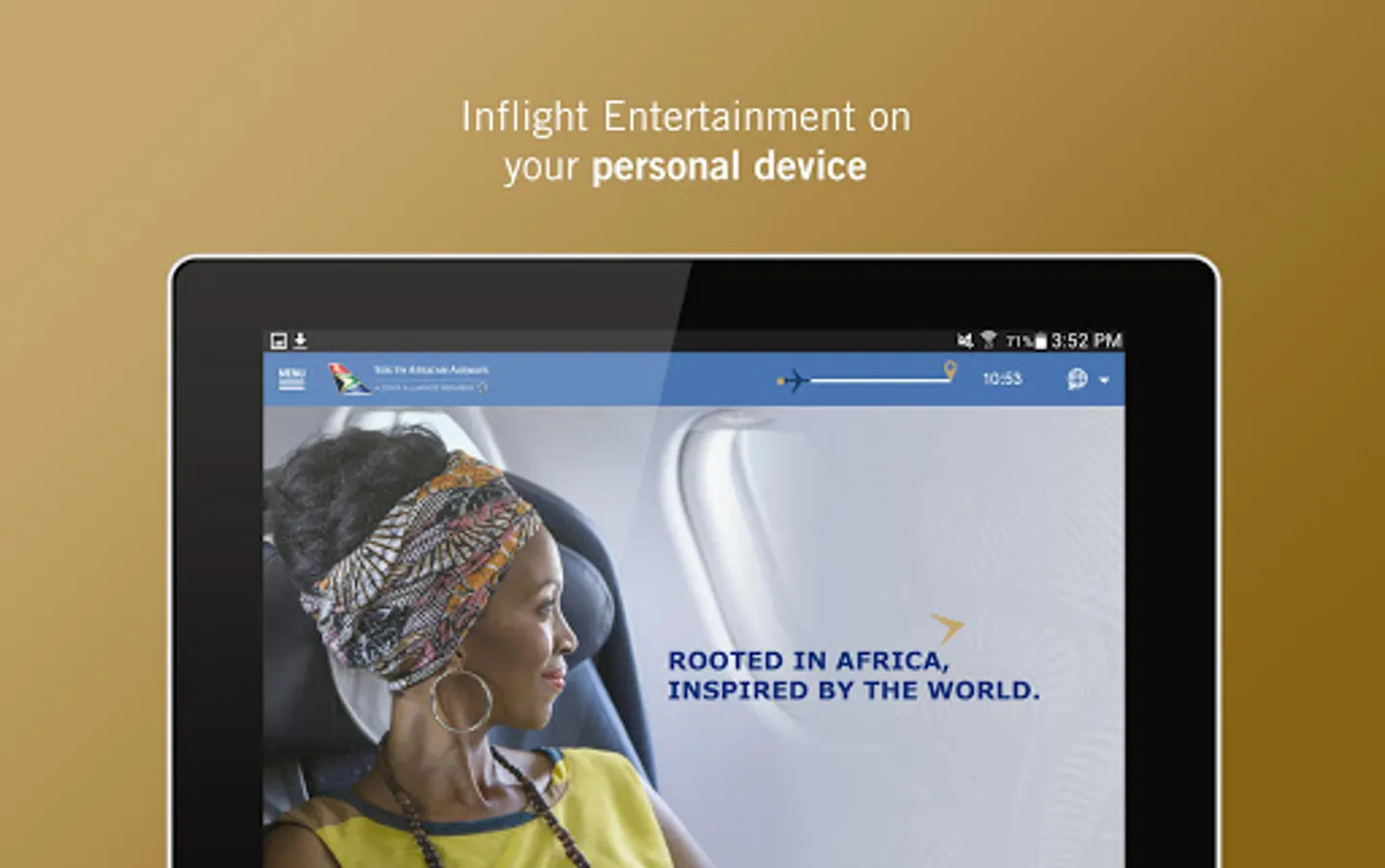 Experience the finest entertainment in the skies with South African Airways Inflight Entertainment App. Connect and stream a wide selection of Magazines, News Articles and Short Videos, and experience an Interactive Moving Map on your own personal device.