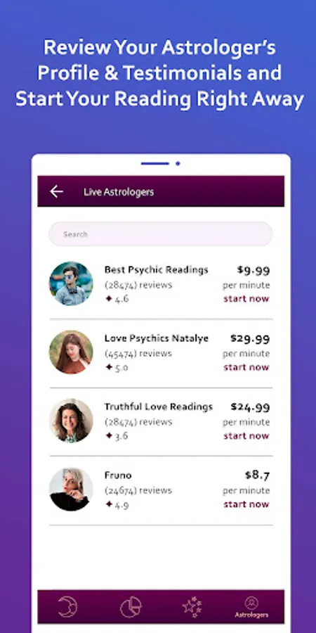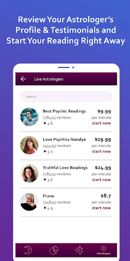 ✓ Detailed psychics and gifted astrologer’s profiles, giving you the power to choose who you want to talk to