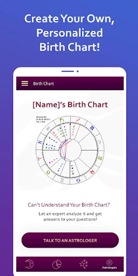 Get your customized birth chart based on the constellation of the stars at the time of your birth