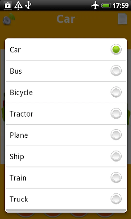 - sounds of vehicle (car, bus, tractor, plane, ship, bike)