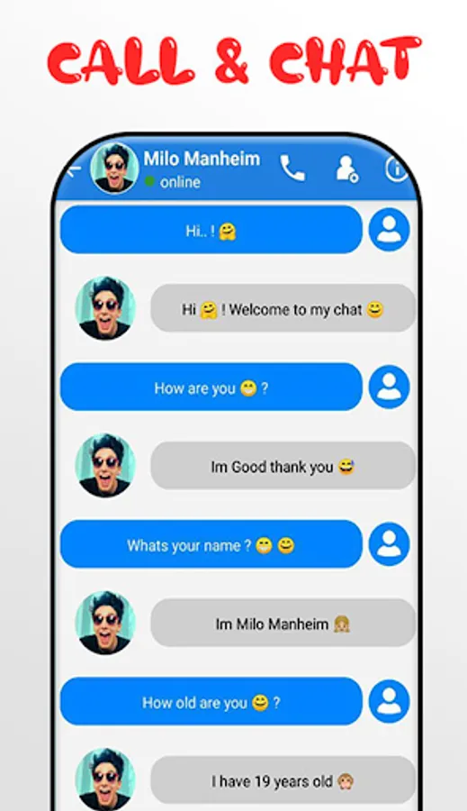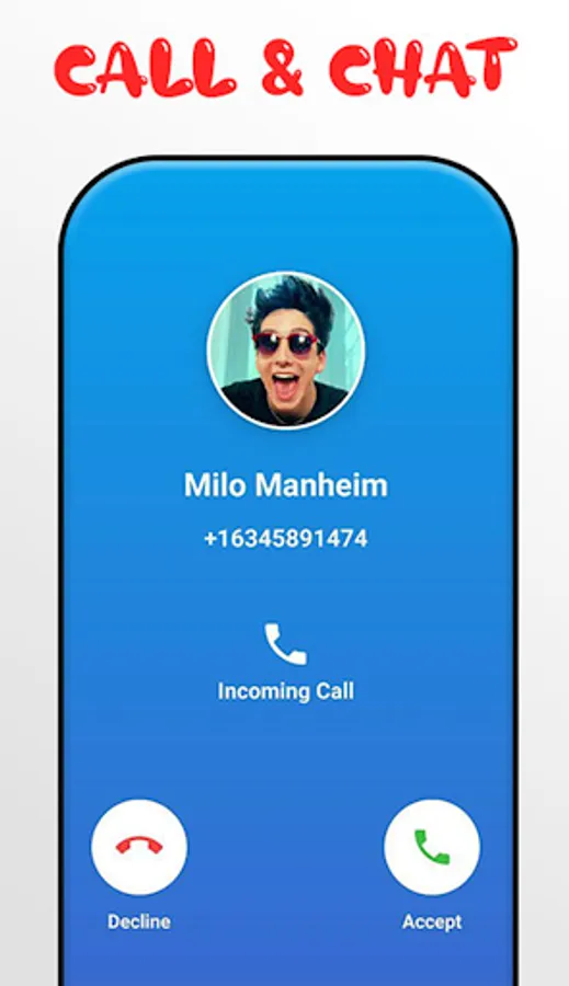 With milo manheim games call You can receive a fake call simulate a real voice of milo manheim and also simulate a real video of milo manheim, using this app to have a fun time is very good because to call you idol milo manheim and have a simulation fake call with milo manheim, that makes a very funny moment with your friends, and also you have the option to receive a call and prank you friend, and that shows them that you receive calls from milo manheim, and after that tell the that is just a joke app simulate a fake call milo manheim, and advice them to install this app too because they will receive a funny call from milo manheim, and they will do the same thing using milo manheim app, and pranking their friends.