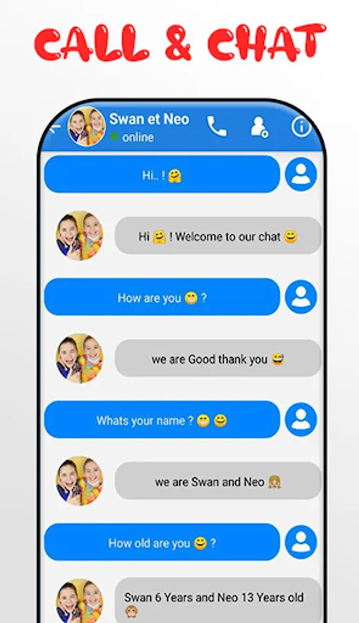 Attention: This App is purely fictional and not an official just made by For Fun It's just entertainment for ! In other words, this is not swan et neo who calls, but a simulation of fake calls and fiction. Thank you for downloading I have joined us. thank you..