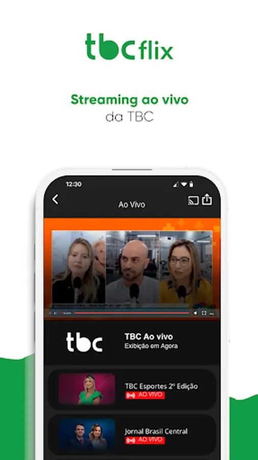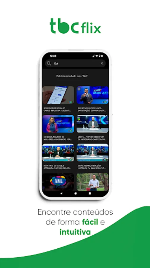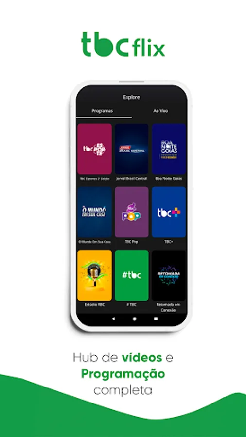 Application with display of ott videos of the entire TBC TV grid, separated by categories.