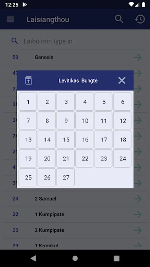 2. Dynamic Word Search - Search for a particular word in the Laisiangthou by selecting one of the drop-down selection options. Search results will be highlighted in red colour. Clicking on the search results will bring you to the relevant Chapter of Book. To bring up the search, click on the Search Icon.