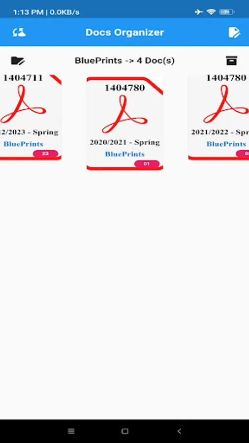 This app is an eOrganizer for all kinds of PDF documents; and ePub in the near future; with searching, simplicity of navigation, uploading, and sharing capabilities. The documents are organized in folders, the folder contents is navigated left and right. Clicking a document open previewer with page navigation while remember the current page viewed even after restarting the app. the document assigned Title and keywords can be edited separately. Documents can be moved between folders, erased, or shared with other apps.