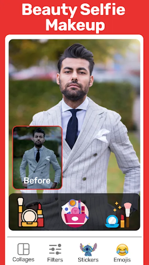3⦁ Stickers for the decoration of your picture are incredibly easy to play. Use flags, comics, love birds, smiley, tattoos, hearts, Halloween, independence stickers, beards, accessories, animals, candies hats, emoji, rainbow, cats, snap and many more funny stickers.