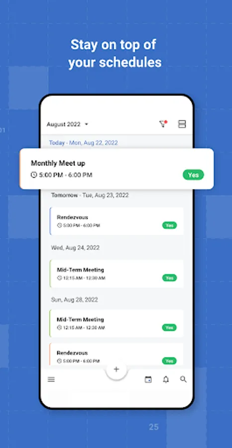 You can always stay informed of what's coming up even without having to open the app! Pin the Zoho Calendar widget to your home screen, to take a quick glance at the upcoming events or the monthly Calendar whenever you want!