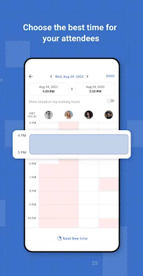 An event well planned is half executed! Plan ahead and book meeting rooms in advance by checking availability. You can also make sure you schedule the meeting at a convenient time for all attendees by checking when they are available and when they are occupied with other events.