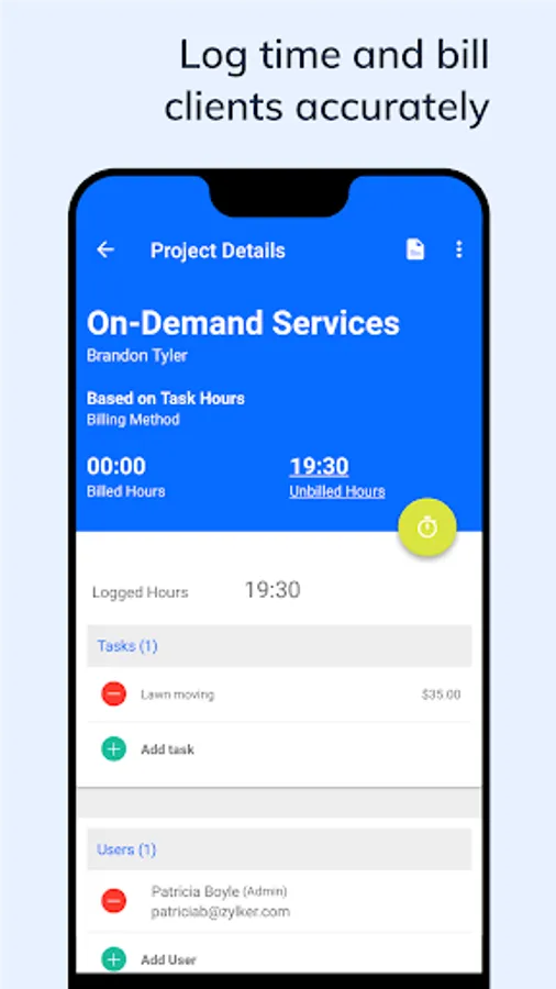 Keep track of multiple projects, track the time spent on every task, and bill customers right from the app.