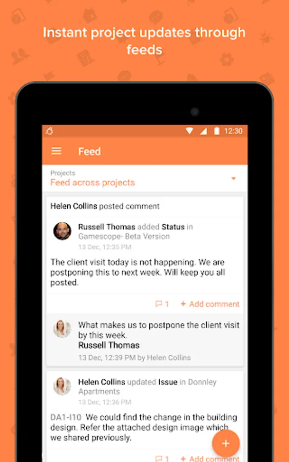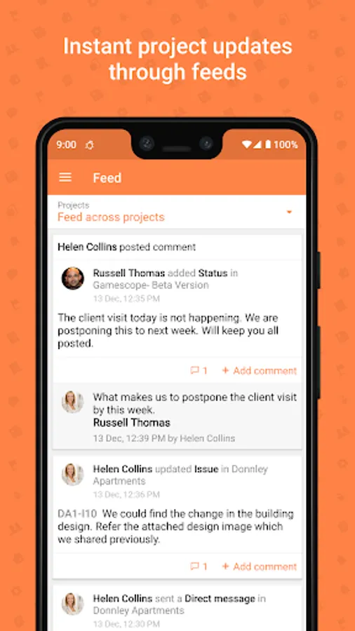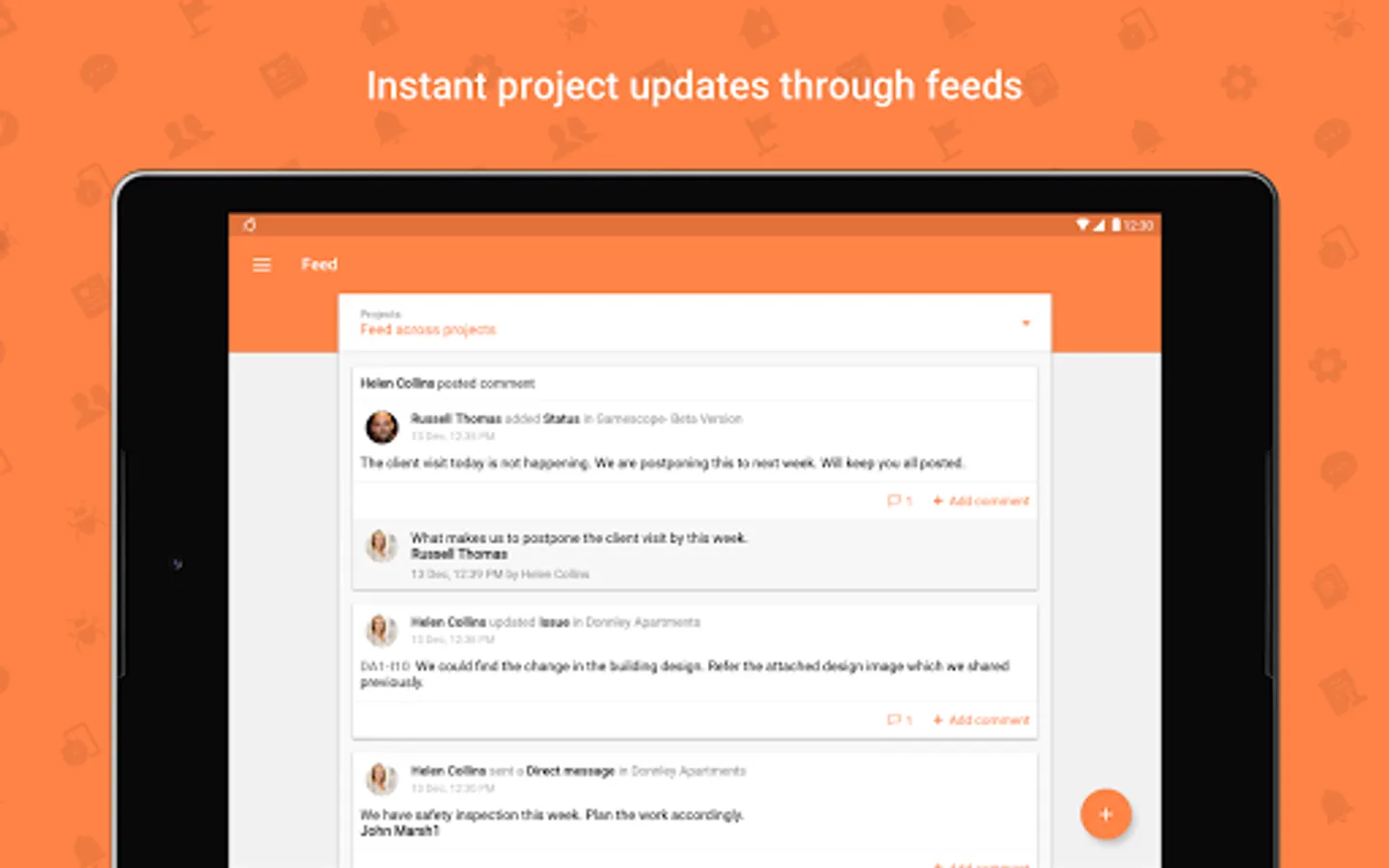 - Take to Feeds to discuss details, or post important updates about the progress of your project.
