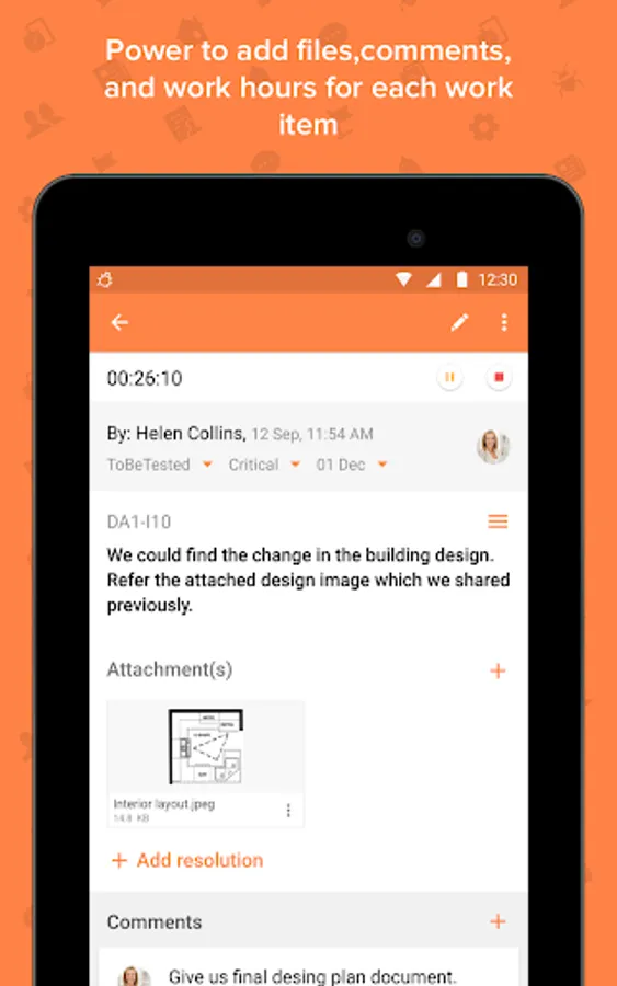 - Add attachments to better explain the issues, give resolutions, or make comments under each issue. Have focused conversations and drive better results.