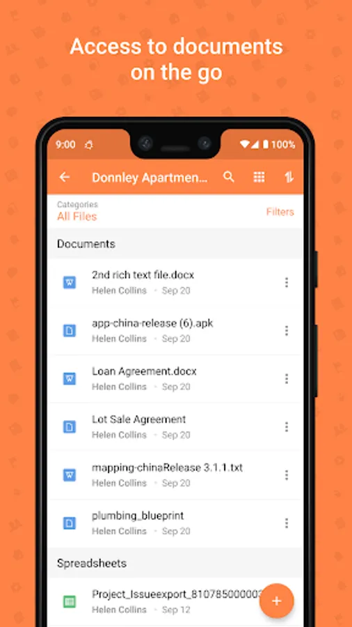 - View all your documents in a single place, as a list or as thumbnails. You can upload documents or new versions to existing documents.