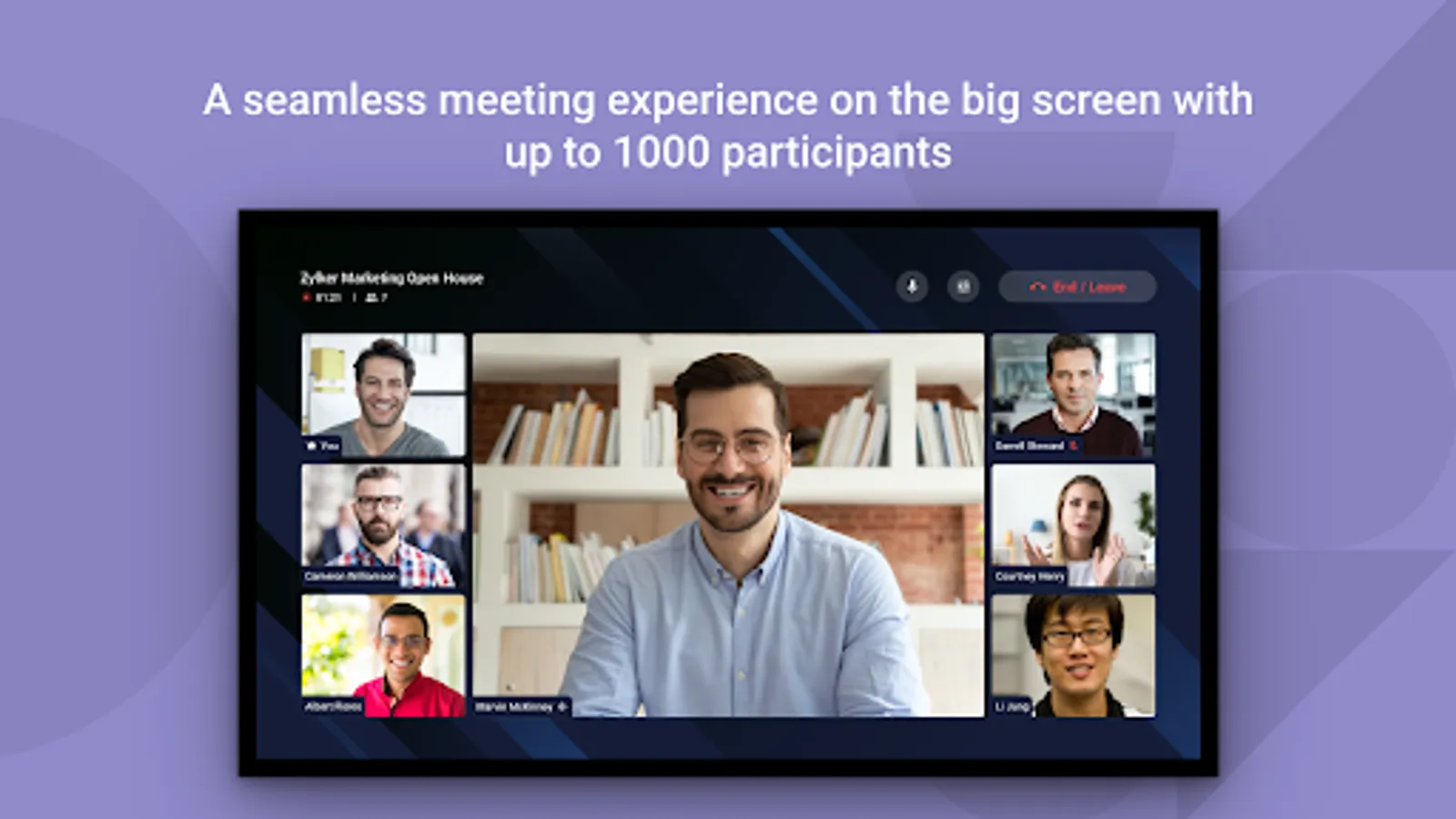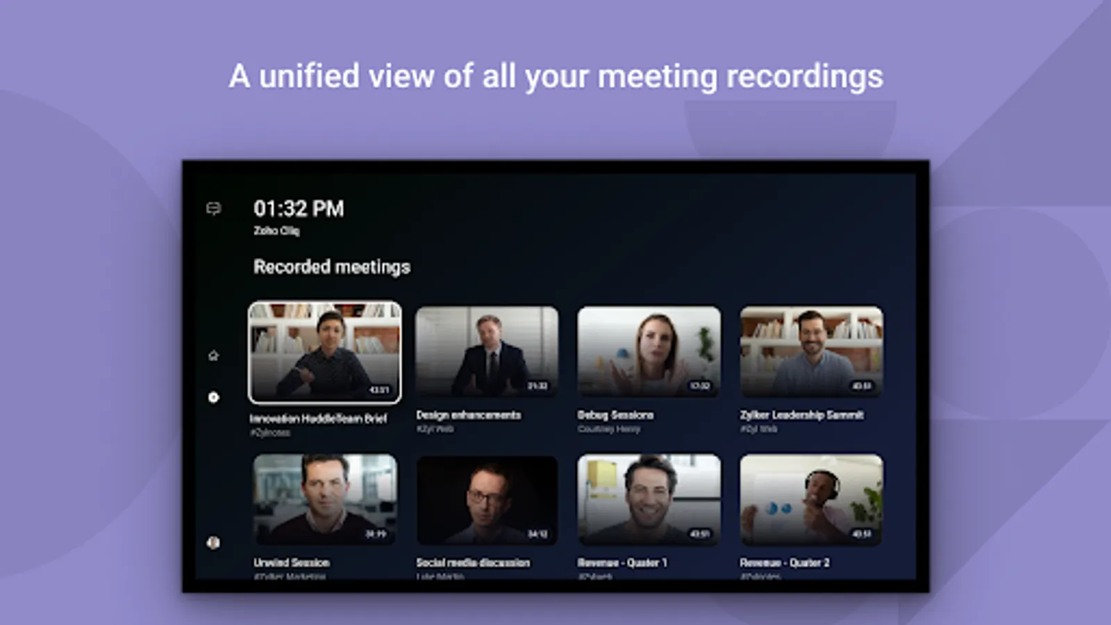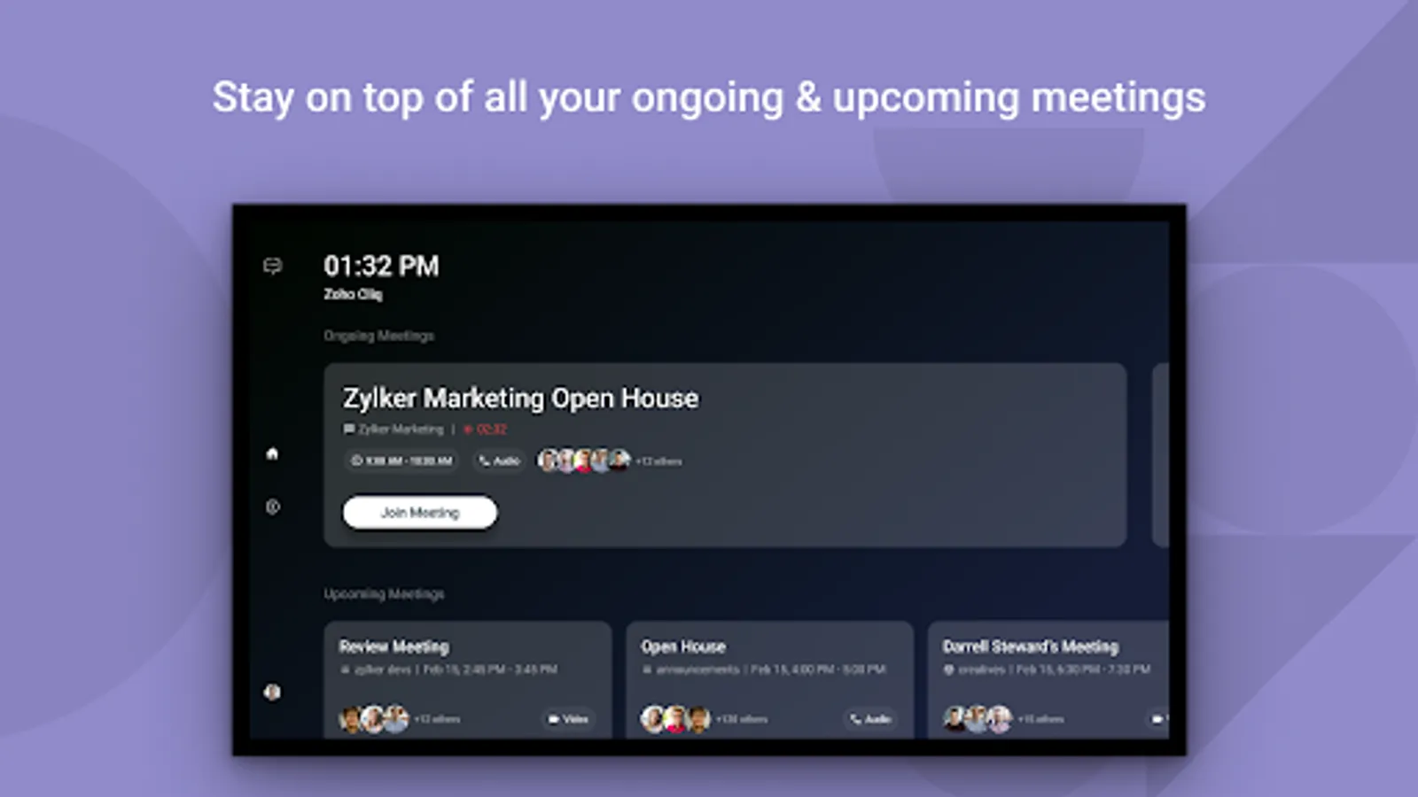 Visually connect with your team anytime, anywhere, with the help of Cliq meetings. Both audio and video meetings in Cliq allow you to interact with up to 1000 members at a time. Now with Zoho Cliq - Meeting on TV, as the name suggests, bring all your meeting to the big screen.
