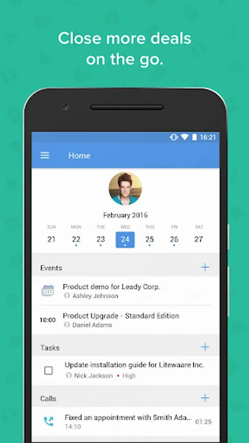 - Get a clear overview of your scheduled tasks, events, and calls. Set reminders so that you never miss out on a single one.