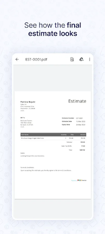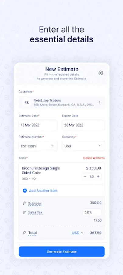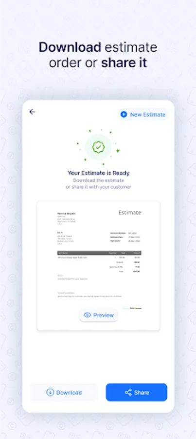 Instantly create estimate on the go for free. All you need to do is fill in the estimate and select print or download it as a PDF file. You don't need to sign in or sign up.